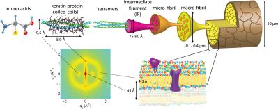 Keratin is a structural protein mainly found in hair, nails, hooves, horns, quills.[10] Basically keratin is formed by polypeptide chains, which coil into α-helices with sulfur cross-links or bond into β-sheets linked by hydrogen bonding. β-keratin, which is tougher than α-conformation, is more common in birds and reptiles.
