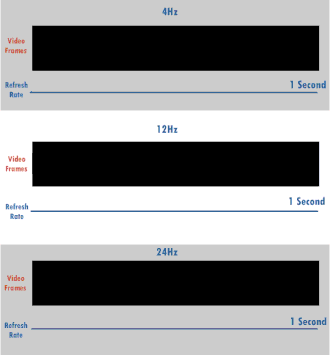 The refresh rate (or "vertical refresh rate", "vertical scan rate", terminology originating with the cathode ray tubes) is the number of times per second that a raster-based display device displays a new image. This is independent from frame rate, which describes how many images are stored or generated every second by the device driving the display.