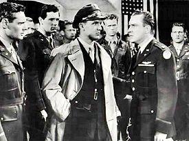 - Rock Hudson has an uncredited role as a pilot in his film debut. Hudson, a former truck driver by the name of Roy Fitzgerald, was under personal contract to director Raoul Walsh, who rode him unmercifully, saying "You big dumb bastard, don’t just get in the center of the camera and stay there like a tree, move!" It took 38 takes to get a good version of Hudson's first line, "You’ve got to get a bigger blackboard." He had another line after the raid on Berlin, as they celebrate in the bar with their lucky mascot black cat, "You're sure it's the same one?".[5]