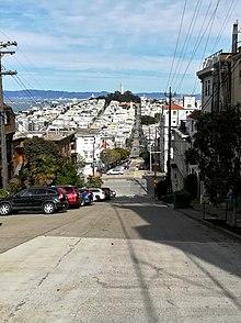 Filbert Street in San Francisco, California starts at Lyon Street[1] on the east edge of The Presidio and runs east, crossing Van Ness Avenue and Columbus Avenue. It ends on Telegraph Hill[2] at Kearny Street below Coit Tower and eventually resumes as a pedestrian stairway known as the Filbert Street Steps.