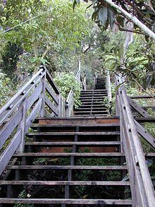 The Filbert Street Steps, a step street, descend the east slope of Telegraph Hill along the line where Filbert Street would be if the hill weren't so steep. The steps run through the Grace Marchant Garden, which resident Grace Marchant started in 1949 and is now tended to and paid for by the residents of the "street."[3] From there, the steps run down to an eastern stub of Filbert Street and the walkway through the plaza to The Embarcadero. Many houses in this residential neighborhood are accessible only from the steps. As on paved streets, several fire hydrants and a solitary parking meter are located along the steps.