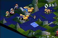 Another difference is the manner in which random battles are encountered. Like other Final Fantasy games, random battles occur on the world map. However, in Final Fantasy Tactics, random battles happen only in pre-set locations, marked in green on the world map.[7] Passing over one of these spots may result in a random encounter. Another major aspect of battles is magical attacks. Certain magical attacks cause area of effect damage, and many of the more powerful magical attacks require several turns of charging.[8] Hit Points of enemy units are also visible to the player (except in the case of certain bosses), allowing the player to know exactly how much damage they still have to inflict on a particular unit.[6]
