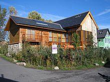 A recent independent study[5] concludes that the residents have the lowest ecological footprint of any community measured so far in the industrialised world and is also half of the UK average.[6] Although the project has attracted some controversy, the growing profile of environmental issues such as climate change has led to a degree of mainstream acceptance of its ecological ethos.[7][8][9]