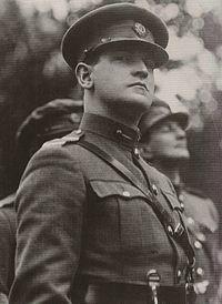 Fine Gael was founded on 8 September 1933[29] following the merger of its parent party Cumann na nGaedheal, the National Centre Party and the Army Comrades Association. Its origins lie in the struggle for Irish independence and the pro-Treaty side in the Irish Civil War and Michael Collins, in particular, is linked to the party.[30] In its early years, the party was commonly known as Fine Gael–The United Ireland Party, abbreviated UIP.[31][32][33]