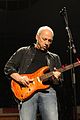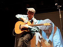 In the early 1970s the next generation of British artists added new tunings and techniques, reflected in the work of artists like Nick Drake, Tim Buckley and particularly John Martyn, whose Solid Air (1972) set the bar for subsequent British acoustic guitarists.[22] Perhaps the most prominent exponent of recent years has been Martin Simpson, whose complex mix of traditional English and American material, together with innovative arrangements and techniques like the use of guitar slides, represents a deliberate attempt to create a unique and personal style.[23] Martin Carthy passed on his guitar style to French guitarist Pierre Bensusan.[24] It was taken up in Scotland by Dick Gaughan, and by Irish musicians like Paul Brady, Dónal Lunny and Mick Moloney.[25] Carthy also influenced Paul Simon, particularly evident on Scarborough Fair, which he probably taught to Simon, and a recording of Davy's Anji that appears on Sounds of Silence, and as a result was copied by many subsequent folk guitarists.[19] By the 1970s Americans such as Duck Baker and Eric Schoenberg were arranging solo guitar versions of Celtic dance tunes, slow airs, bagpipe music, and harp pieces by Turlough O'Carolan and earlier harper-composers. Renbourn and Jansch's complex sounds were also highly influential on Mike Oldfield's early music.[26] The style also had an impact within British folk rock, where particularly Richard Thompson, used the D–A–D–G–A–D tuning, though with a hybrid picking style to produce a similar but distinctive effect.[25]