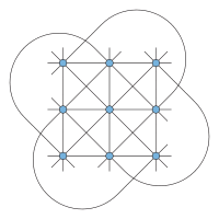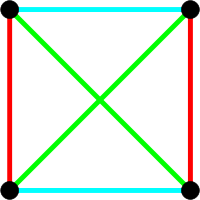 The simplest affine plane contains only four points; it is called the affine plane of order 2. (The order of an affine plane is the number of points on any line, see below.) Since no three are collinear, any pair of points determines a unique line, and so this plane contains six lines. It corresponds to a tetrahedron where non-intersecting edges are considered "parallel", or a square where not only opposite sides, but also diagonals are considered "parallel". More generally, a finite affine plane of order n has n2 points and n2 + n lines; each line contains n points, and each point is on n + 1 lines. The affine plane of order 3 is known as the Hesse configuration.