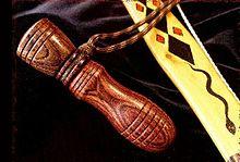 Fire pistons in Southeast Asia were variously constructed of bamboo, wood, metal, ivory, bone, and horn. The main tube was typically around 3.25 in (8.3 cm) long and 0.5 in (1.3 cm) in diameter, with a bore size around 0.375 in (0.95 cm).[7] The end of the tube usually flared out into a small cavity used for holding tinder.[2] The tinder used was typically obtained from the leaf bases of palm trees and rattan vines and were usually stored in a tinder box carried along with the piston. They were reported to be known as lek phai tok in Thai; and gobek api in Malay (literally "fire mortar and pestle).[8]