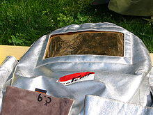 A fire proximity suit (also, silvers, silver bunker suit, or asbestos suit) is a suit designed to protect a firefighter or volcanologist from extremely high temperatures. They were first designed and used in the 1930s. Originally made of asbestos fabric, current models use vacuum-deposited aluminized materials.