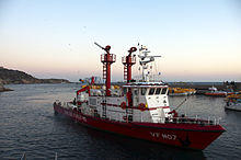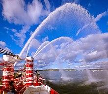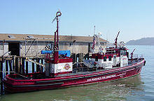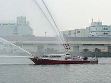 A fireboat is a specialized watercraft with pumps and nozzles designed for fighting shoreline and shipboard fires. The first fireboats, dating to the late 18th century, were tugboats, retrofitted with firefighting equipment.[1] Older designs derived from tugboats and modern fireboats more closely resembling seafaring ships can both be found in service today. Some departments would give their multi-purpose craft the title of "fireboat" also.