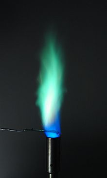 | Blue | Copper halides | CuCl2 (copper chloride), at low temperature |
