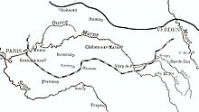 The First Battle of the Marne was a battle of the First World War fought from 6 to 12 September 1914.[1] It resulted in an Allied victory against the German armies in the west. The battle was the culmination of the Retreat from Mons and pursuit of the Franco–British armies which followed the Battle of the Frontiers in August and reached the eastern outskirts of Paris.