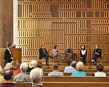 The First Christian Church (originally known as the Tabernacle Church of Christ) in Columbus, Indiana, was built in 1942. It was the first contemporary building in Columbus and one of the first churches in the United States to be built in a contemporary architectural style.[3]