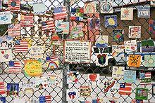 The first memorials to the victims of the September 11 attacks in 2001 began to take shape online, as hundreds of webmasters posted their own thoughts, links to the Red Cross and other rescue agencies, photos, and eyewitness accounts. Numerous online September 11 memorials began appearing a few hours after the attacks, although many of these memorials were only temporary.[1] Around the world, U.S. embassies and consulates became makeshift memorials as people came out to pay their respects.