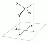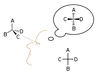 The Fischer projection, devised by Emil Fischer in 1891,[1] is a two-dimensional representation of a three-dimensional organic molecule by projection. Fischer projections were originally proposed for the depiction of carbohydrates and used by chemists, particularly in organic chemistry and biochemistry. The use of Fischer projections in non-carbohydrates is discouraged, as such drawings are ambiguous when confused with other types of drawing.[2]