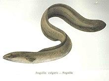Many fishes, particularly eel-shaped fishes such as true eels, moray eels, and spiny eels, are capable of burrowing through sand or mud.[30] Ophichthids, the snake eels, are capable of burrowing either forwards or backwards.[31]
