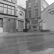 In the 18th century, a tavern on the street, the Bull's Head, was one of the most popular and well-known establishments in Dublin, and was in demand for anniversary and celebratory dinners by the various city guilds and bodies. It also provided accommodation for assemblies of the Grand Lodge of Irish Freemasons. The Bull's Head Musical Society was also well known and undertook the building of a Music Hall which was formally opened in 1741.[1]