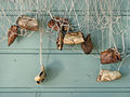Three fykes at the Zuiderzeemuseum, Netherlands Fishing nets on a shrimp boat, Ostend, Belgium Fishing nets and marker flags used on a small fishing vessel at Lyme Regis, England |
