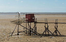 Fixed gillnet (on stakes) | ![]() | Fixed gillnets[19] are nets for catching fish in shallow intertidal zones. It consists of a sheet of network stretched on stakes fixed into the ground, generally in rivers or where the sea ebbs and flows, for entangling and catching the fish. | ||