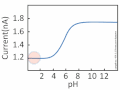 pH Sensor: Charged channels filled with an electrolyte have a surface conductivity, in addition to the regular volume conductivity, of the electrolyte. Ions attached to a charged surface attract a cloud of mobile counterions. Fixed and mobile ions form a double layer. For small channels, surface conductivity is responsible for most of the charge transport. For small channels, surface conductivity exceeds volume conductivity. Negative surface charges can be occupied by firmly bound protons. At low pH (high proton concentration), the wall charge is completely neutralized. Surface conductivity vanishes. Due to the dependence of surface conductivity on pH, the channel becomes a pH sensor.[44]