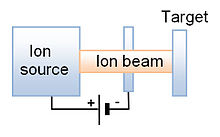 | Heavy ion particle accelerators provide parallel-beam irradiations at high luminosity with ions of defined mass, energy, and tilt angle.[25][26][27] Intensities are available in wide ranges, even up to billions of ions per second. Depending on the available energy, track lengths between a few and several hundred micrometers can be produced. Accelerators are used in micro- and nanotechnology. Radioactive contamination is absent at ion energies below the Coulomb barrier.[28] | |