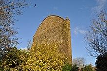 The Eton Fives court is modelled on part of Eton College's Chapel[2] and is enclosed on three sides and open at the back. It has a more complex variation and some specific court features or "hazards". A small step splits the court into upper and lower sections, and sloping ledges run horizontally across the walls, one of which forms the "line". There is a large obstruction, known as a 'buttress', or a 'pepper' to fives players, on the left-hand side of the court in line with the step. At the bottom of the buttress is the 'box' or 'pepper pot'.[2] The step extends approximately 80 cm into the court and is around 15 cm high. The first courts at Eton were built in 1840, and subsequently at a multitude of other locations, and the Laws for Eton Fives were first published in 1931.