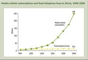 In many countries the landline has not been readily available to most people. In some countries in Africa, the rise in cell phones has outpaced any rise in landline telephones. Between 1998 and 2008, Africa added only 2.4 million landlines.[5] During this same time the number of mobile phone lines that have been subscribed to has skyrocketed. Between 2000 and 2008, cell phone use has risen from fewer than 2 in 100 people to 33 out of 100.[5] It is more difficult to install landline copper wires to every user than it is to install mobile wireless towers that people can connect to from anywhere. There has also been substantial decline of landline phones in Indian subcontinent, in urban and even more in rural areas.