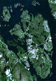 Fjell was an island municipality located entirely on islands off the coast of the mainland Bergen Peninsula. It covered many islands in a large archipelago that stretched from Sund in the south to Fedje in the north. The largest island in Fjell was Sotra, although only the northern half of the island is part of Fjell. The second-largest island was Litlesotra, where the largest village area in Fjell is located (the village of Straume). The small island of Bildøyna is located between those two islands. The small island of Geitung lies north of Bildøyna and the small island of Bjorøy lies to the south. Bjorøy is not connected to Fjell by road, but there is the undersea Bjorøy Tunnel that connects it to the city of Bergen. On the western side of Sotra, the smaller islands of Algrøyna, Lokøyna, and Syltøyna are located. On the north end of Sotra lies the small islands of Misje and Turøyna.[8]