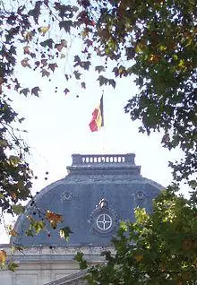 The flags are flown above the palaces when the king is in Belgium, not necessarily just in one of the palaces. The flags are not flown if the king is on a state visit overseas or on holiday outside of Belgium.[6] There have been exceptions to this rule, but, in general, presence or absence of the flag is a reasonably reliable indicator of whether or not the king is in the country.