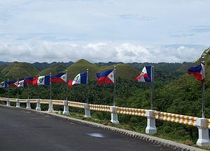 Bohol is one of the few Philippine provinces to have a distinctly-designed flag, deviating from the standard flag design of the provincial seal on a colored field. The flag has a proportion of 1:2, the same as the flag of the Philippines.[1]