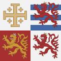 Under the terms of the Annan Plan for Cyprus, a United Nations proposal to settle the Cyprus dispute, a new national flag would have been adopted by a reconstituted confederal republic of Cyprus. Unlike the current official flag, this version consciously incorporates colours representing Greece (blue) and Turkey (red) alongside a large copper-yellow band for Cyprus; the heraldic blazon is per fess Azure and Gules, a Spanish fess Or fimbriated Argent. It is possible that any future Cyprus settlement will include the adoption of a new flag.