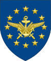 The blazon given by the EU in 1996 describe the design as: "On an azure field a circle of twelve golden mullets, their points not touching."[7]