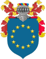 Among the unsuccessful proposals was the flag of Richard von Coudenhove-Kalergi's International Paneuropean Union, which he had himself recently adopted for the European Parliamentary Union.[29] The design was a blue field with a red cross inside an orange circle at the centre. Kalergi was very committed to defending the cross as "the great symbol of Europe's moral unity", the Red Cross in particular being "recognized by the whole world, by Christian and non-Christian nations[,] as a symbol of international charity and of the brotherhood of man",[30] but the proposal was rejected by Turkey (a member of the Council of Europe since 1949) on grounds of its religious associations[31] in spite of Kalergi's suggestion of adding a crescent alongside the cross to overcome the Muslim objections.[32]