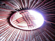 The centre of the sun features a stylized illustration of the roof (tunduk) atop a traditional Kyrgyz tent (yurt) when viewed from the interior.[3][5][8] Although these tents are less commonly used today,[3] its incorporation into the flag is meant to symbolize the "origin of life", the "unity of time and space", as well as the people's "hearth and home" and their history.[3][5]
