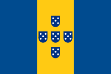 | Design | A vertical triband of blue (hoist-side and fly-side) and gold with the cross of the Order of Christ centred on the gold band. |