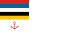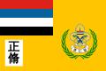 The flag of the Empire of Manchuria had a mustard yellow field with four horizontal stripes of different colors in the upper-left corner. The colors of the flag were based on the colors on the Five Races Under One Union flags used by the Beiyang government and the Empire of China. The flag was first established in Announcement of National Flag on March 1, 1932.[1]