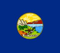 Within the seal, a plow, shovel, and pick rest in a field in front of the Great Falls of the Missouri River. The ribbon contains the state motto, Oro y plata, which is Spanish for "Gold and silver". The current flag was adopted in 1905, and the word "Montana" above the seal was added in 1981. In 1985, the flag was again modified to specify the font used in "Montana:" Helvetica Bold.[1][2] Before it was adopted as a state flag, it was used by Montana troops deploying for the Spanish–American War.[3]