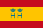 Design | A horizontal tricolour of red, yellow (double width) and red; charged with the Spanish coat of arms off-centred toward the hoist. |