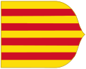 In Spain the medieval kingdoms which merged in the sixteenth century had their own heraldic symbols and their navies used to display their own flags and standards on both the Mediterranean Sea and the Atlantic Ocean, where the Aragonese and Castilian Crowns had their respective areas of influence. The flag of the Crown of Aragon was a yellow flag with four red stripes (an element which is still common in the present flags of the territories that formed the Crown: Aragon, Catalonia, Valencia, the Balearic Islands and Roussillon in France). The Crown of Castile, since the final union between the kingdoms of Castile and León in 1230, used a quartered flag alternating the Castilian (Gules, a tower Or, masoned sable and ajouré azure) and Leonese (Argent, a lion rampant purpure crowned or, langued and armed gules) emblems. Aragonese and Castilian flags and coats of arms merged when the Catholic monarchs created the new symbols of their personal union of the crowns in 1475.