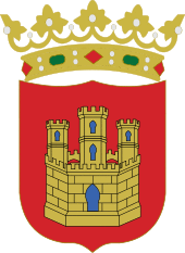 - First quarter, for Castile: Gules, a tower Or, masoned sable and ajouré azure;