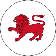 A year later the Tasmanian government decided, with the British Admiralty's approval, that the badge for the colony would be a red lion on a white disk. Originally the lion was to be gold in colour, above a golden torse, which the new flag omitted in favour of a more traditional red.