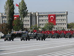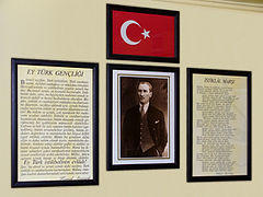 The flag is always displayed prominently in state institutions from schools to ministries. The Çankaya Mansion, Parliament, ministries, schools, military, councils, governors buildings, muhtar's offices, bridges, airports, and every state owned building in the country features one or more Turkish flags.