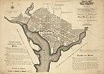 On October 16, all the details of the selections were given to the press and explained. It was explained that the commissioner, who was the former district surveyor, recalled seeing the coat of arms on a shield on old maps. Upon research, a map by Andrew Ellicott engraved in 1792 by Thackara & Vallance in Philadelphia was found. The direct association of the first president with the establishment of the district and the capital city bearing his name was sufficient to justify using heraldic symbolism in the flag to illustrate the historical connection. In his view, it explained why several designs included this idea.[37]