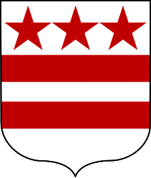 | Design | Argent two bars Gules, in chief three mullets of the second.[1] |