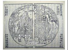 Further examples cited by Needham supposed to demonstrate dissenting voices from the ancient Chinese consensus actually refer without exception to the Earth being square, not to it being flat.[53] Accordingly, the 13th-century scholar Li Ye, who argued that the movements of the round heaven would be hindered by a square Earth,[46] did not advocate a spherical Earth, but rather that its edge should be rounded off so as to be circular.[54] However, Needham disagrees, affirming that Li Ye believed the Earth to be spherical, similar in shape to the heavens but much smaller.[55] This was preconceived by the 4th-century scholar Yu Xi, who argued for the infinity of outer space surrounding the Earth and that the latter could be either square or round, in accordance to the shape of the heavens.[56] When Chinese geographers of the 17th century, influenced by European cartography and astronomy, showed the Earth as a sphere that could be circumnavigated by sailing around the globe, they did so with formulaic terminology previously used by Zhang Heng to describe the spherical shape of the Sun and Moon (i.e. that they were as round as a crossbow bullet).[57]