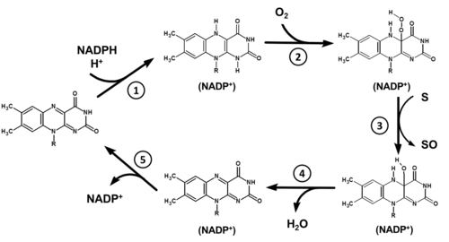 - ^ a b Poulsen LL, Ziegler DM (April 1995). "Multisubstrate flavin-containing monooxygenases: applications of mechanism to specificity". Chemico-Biological Interactions. 96 (1): 57–73. doi:10.1016/0009-2797(94)03583-T. PMID 7720105.