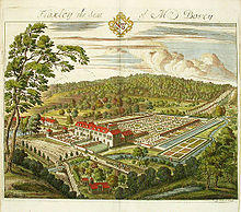 Flaxley Abbey was purchased in 1648 by the London merchant, lawyer and philosopher James Boevey (1622–1696), with his half-brother William.[5] Later resident Catherina Boevey, an inheritance from her short marriage to William Boevey (James Boevey's son), passed the house to Thomas Crawley (later styled Crawley-Boevey) at her death in 1727.[6]