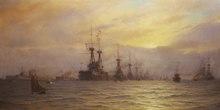 - 23 April 1856, of the Baltic fleet on its return. First recorded example of the evening illumination of the fleet. Showed lessons learnt from the Crimean War, with the first of the ironclad ships present in the form of 4 1,500-ton floating batteries. Over 100 gunboats were present, "puffing about like locomotive engines with wisps of white steam trailing from their funnels."
