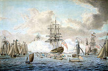 - 23–27 June 1773, King George III set out from Kew, in a Royal coach with scarlet outriders, for what some call the first formal Royal Review. On his arrival he was saluted by a "triple discharge of cannon", and proceeded to the dockyard where admirals and captains were assembled, each with his barge, to escort the King to Spithead. They had dressed their crews in fancy colours, each to his own taste (at that time the crews were not issued uniforms), whilst they themselves were resplendent in the full dress designed for them by George II in 1748. The ships on show were those that had fought the French in the Seven Years' War and were soon to join the War of American Independence, and were led by HMS Barfleur, of 90 guns, built only 5 years before.