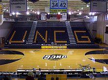 It is home to the University of North Carolina at Greensboro Spartans wrestling and volleyball teams.[1] It also hosts the women's basketball team.[2] It was formerly the full-time home of the men's basketball team as well, but beginning in the 2009–10 basketball season, they moved to larger Greensboro Coliseum for most of their games.[3] The men's basketball team plays a few games every season at Fleming Gymnasium when the Coliseum is being used for other large events.