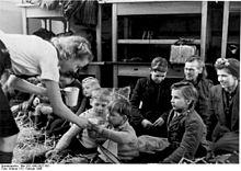 Between 23 January and 5 May 1945, up to 250,000 Germans, primarily from East Prussia, Pomerania, and the Baltic states, were evacuated to Nazi-occupied Denmark,[87][88] based on an order issued by Hitler on 4 February 1945.[89] When the war ended, the German refugee population in Denmark amounted to 5% of the total Danish population. The evacuation focused on women, the elderly and children — a third of whom were under the age of fifteen.[88]